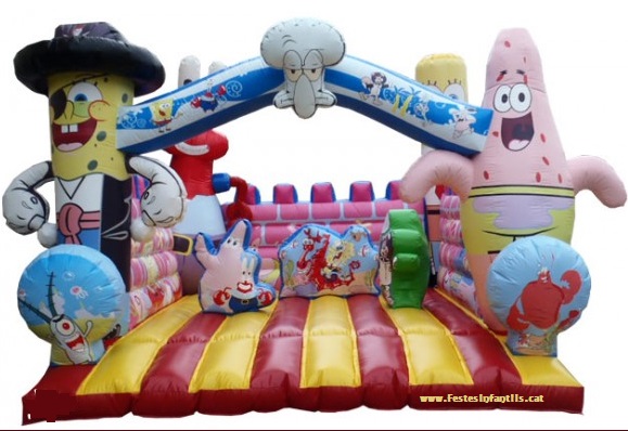 Espectacular inflable tematitzat de Bob Esponja i altres personatges, inclou obstacles al seu interior